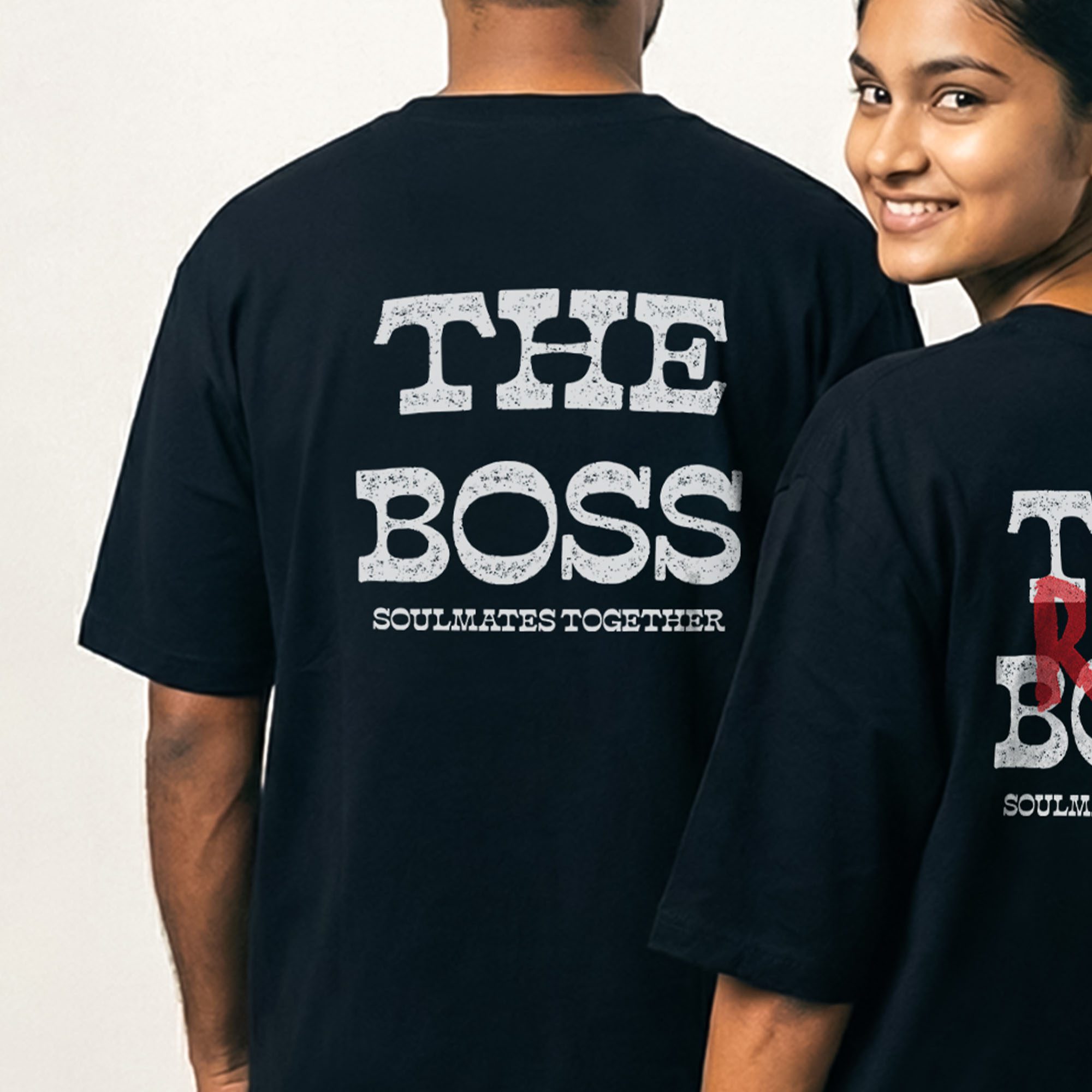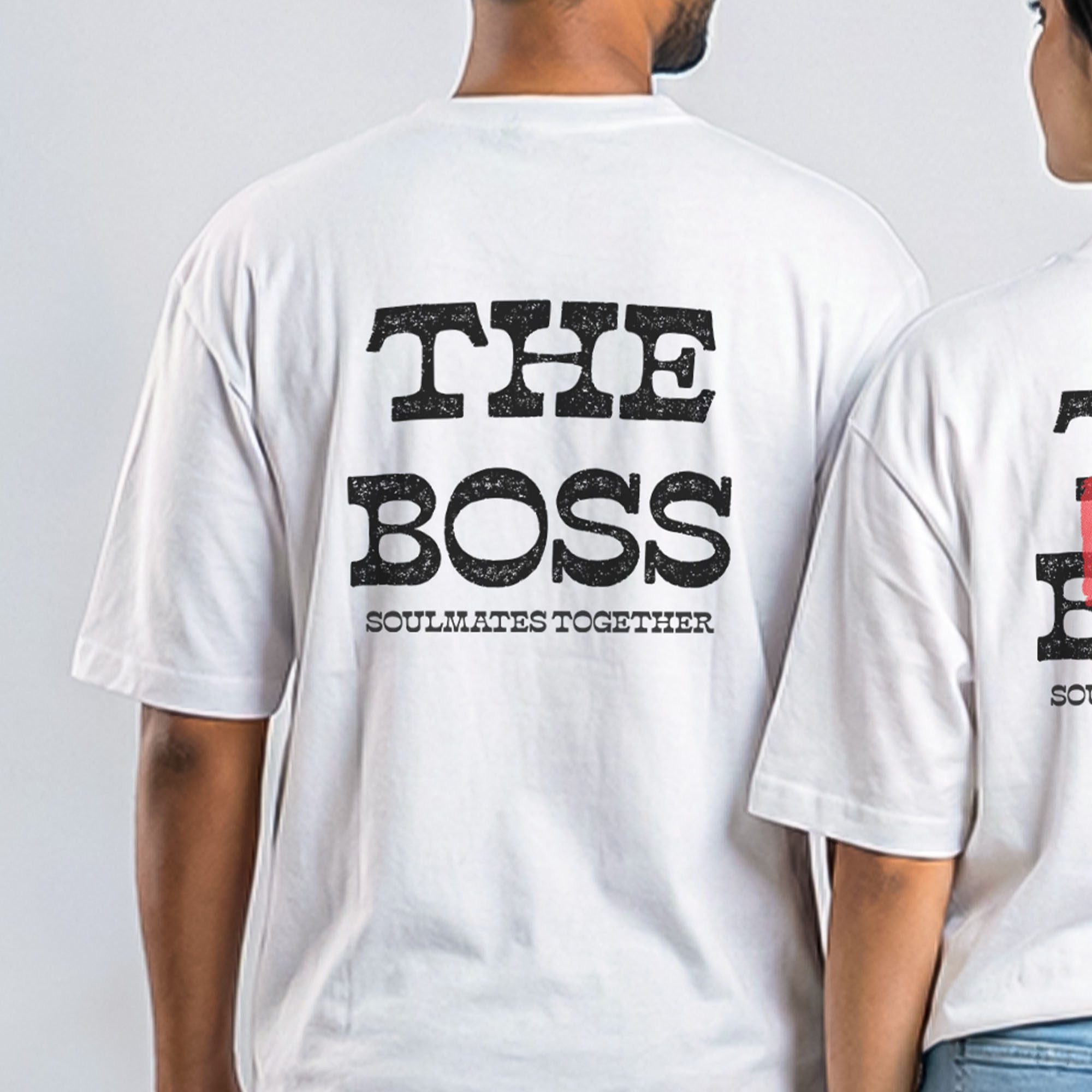 The Set: Includes two tees featuring matching “SOUL/MATE” or “BOSS” graphics.